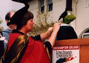 On May 19, 1996, Kermit the Frog gave the commencement address at Southampton College's graduation ceremony after being awarded an honorary doctorate in Amphibious Letters for his contributions to environmental awareness and education.